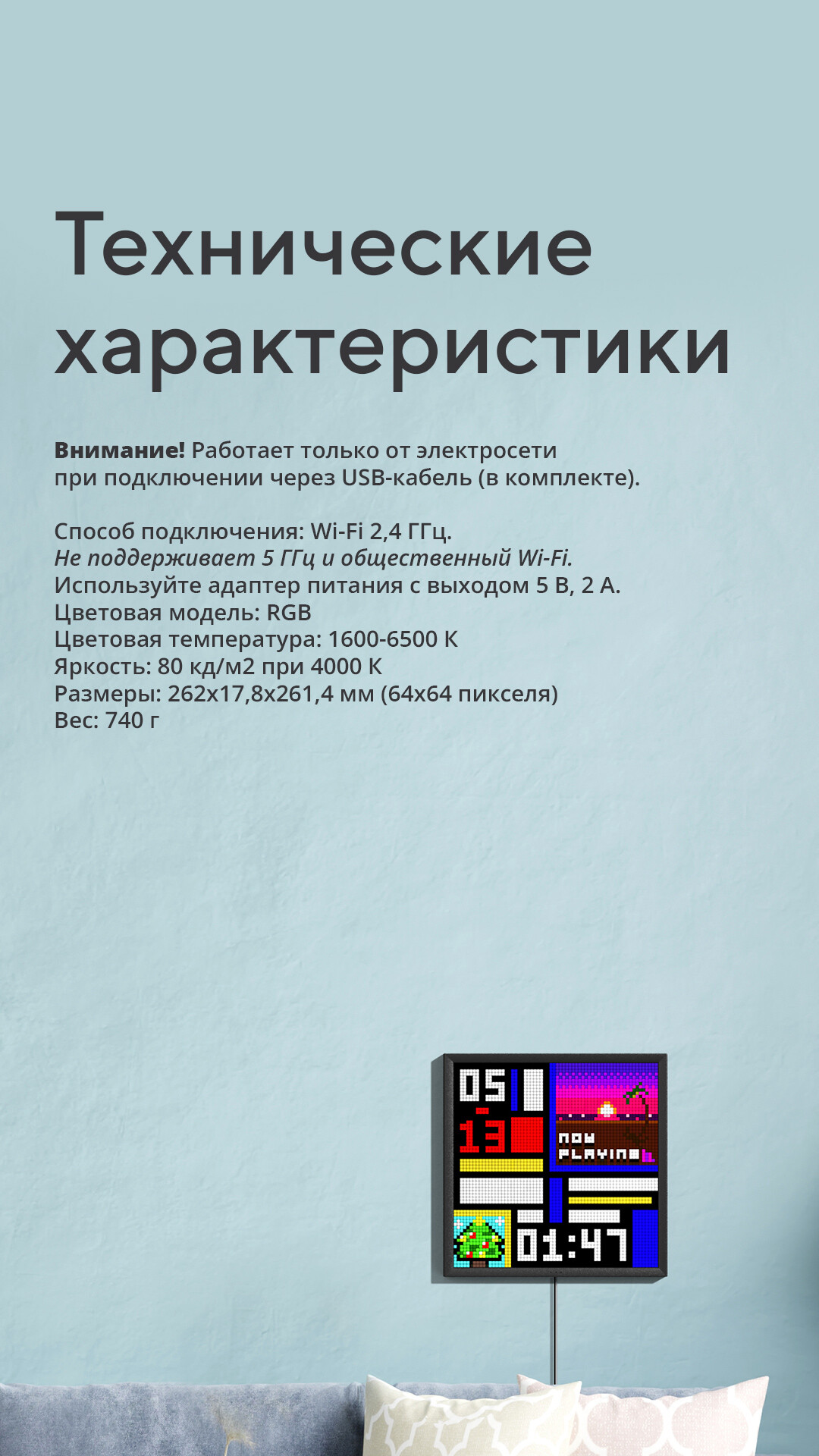 Divoom Pixoo 64 можно с легкостью разместить на столе или стене в доме или офисе. А лаконичный дизайн устройства идеально впишется в любой интерьер, придав вашему пространству нотку стиля.