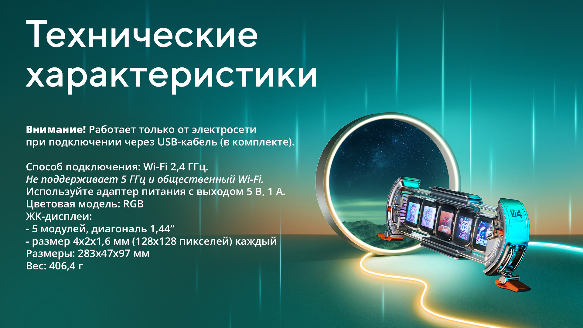 Times Gate - мультизадачный многофункциональный гаджет, состоящий из пяти мини-экранов в одном стильном корпусе с разрешением 128х128 пикселей.